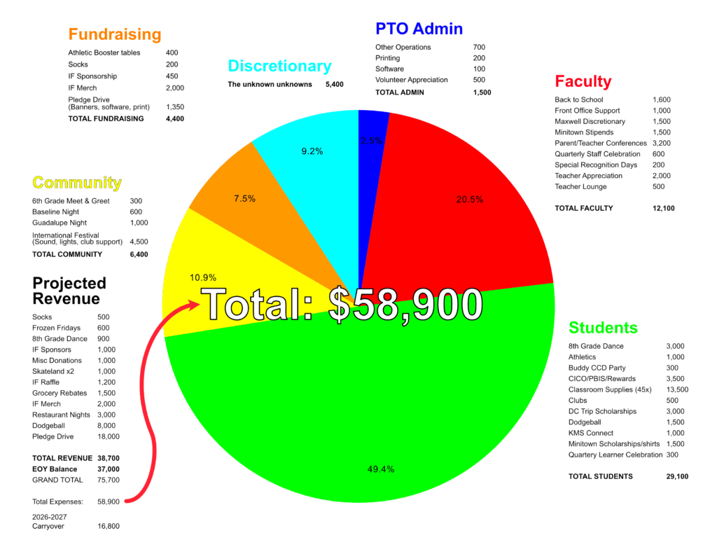 This is how our budget breaks down by category. For a detailed line-by-line breakdown, click here to see the budget we voted on last school year.